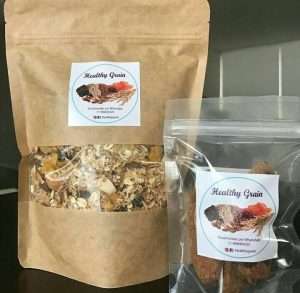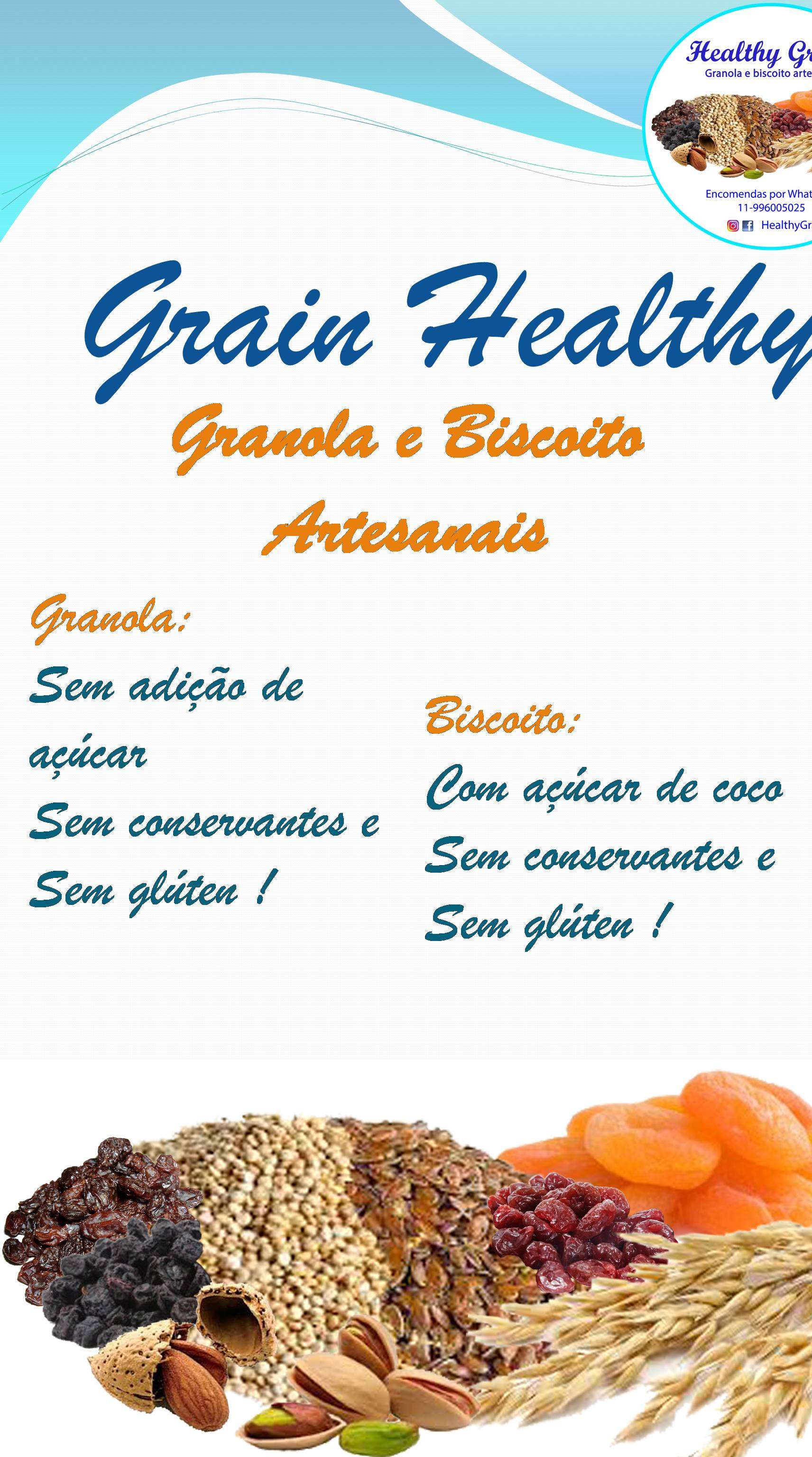 A Healthy Grain é uma marca alimentícia voltada para granolas e biscoitos saudáveis, com ingredientes frescos e sem conservantes, sendo a granola assada gradativamente sem adição de açúcar, e os biscoitos com açúcar de coco e sem glúten.