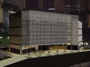 A proposta do edifício é que o térreo seja livre, com uma área prevista à exposições temporárias gratuitas e também de passagem. Será possível atravessar a grande área da praça com tratamento de filtro de luz, voltando se para o café e livraria. Tudo isso totalmente independente do acesso restrito do museu.