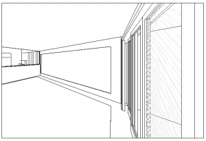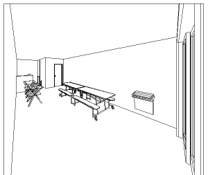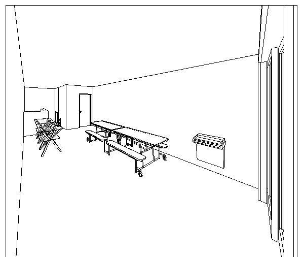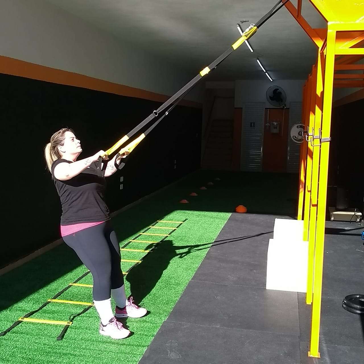 no patamar intermediário da escada se encontra uma sala de guarda volumes para os alunos de modo assim a atender todas as necessidades deste gênero de academia.